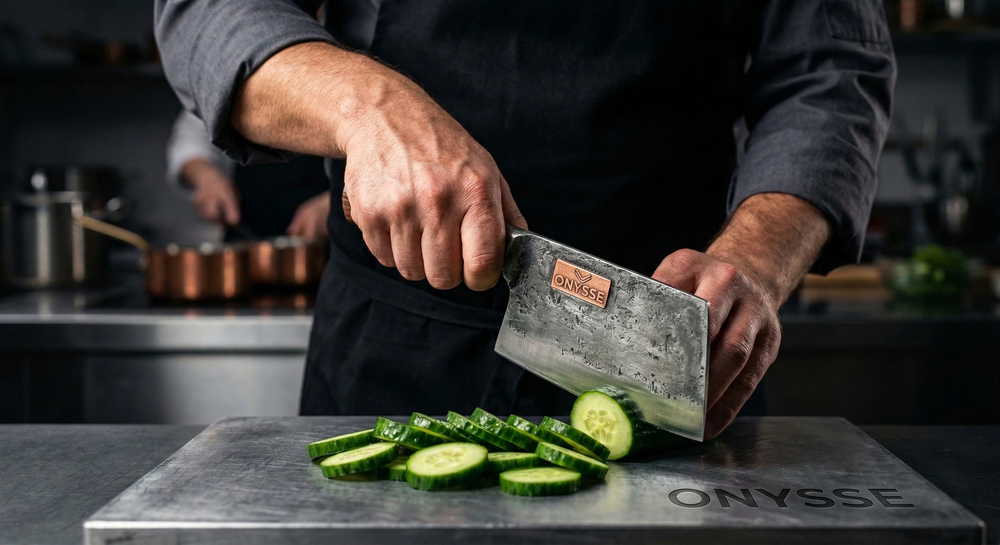 The Onysse system is designed for any smooth-blade kitchen knife, including Chef’s knives, santokus, and cleavers. To maintain precision, it should not be used on serrated blades or specialty single-bevel knives