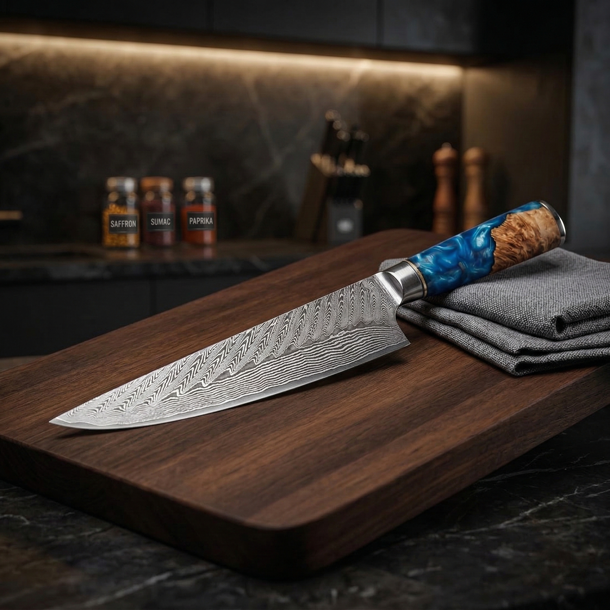 Titanium’s non-porous surface repels bacteria and stains. The ultimate hygienic foundation for your Damascus blades