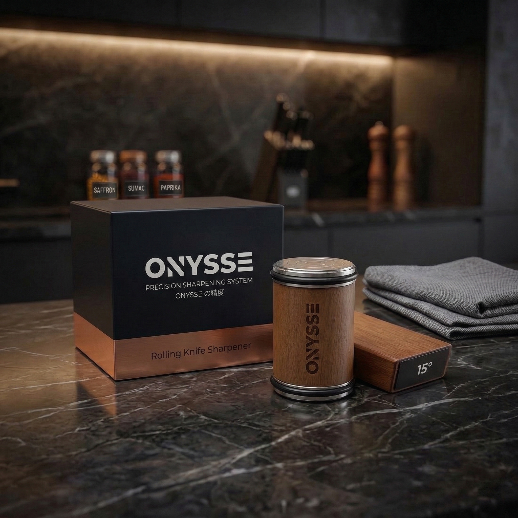 How does the Onysse Rolling Sharpener achieve professional results?